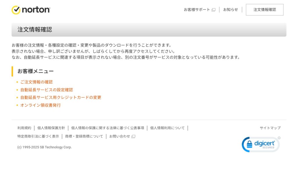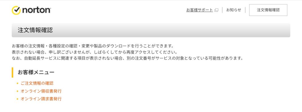 もしノートンのサイトから見ても分からない時は、ノートン 注文情報確認で検索かけるとノートンの該当ページが出てきます。