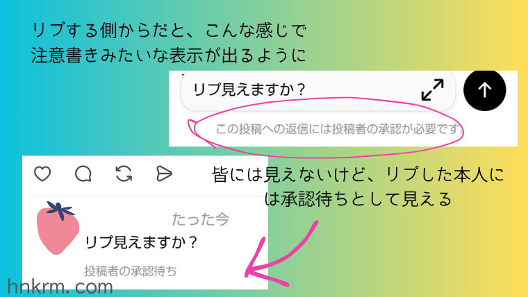 皆には見えないけど、リプした本人には承認待ちとして見えるんです。